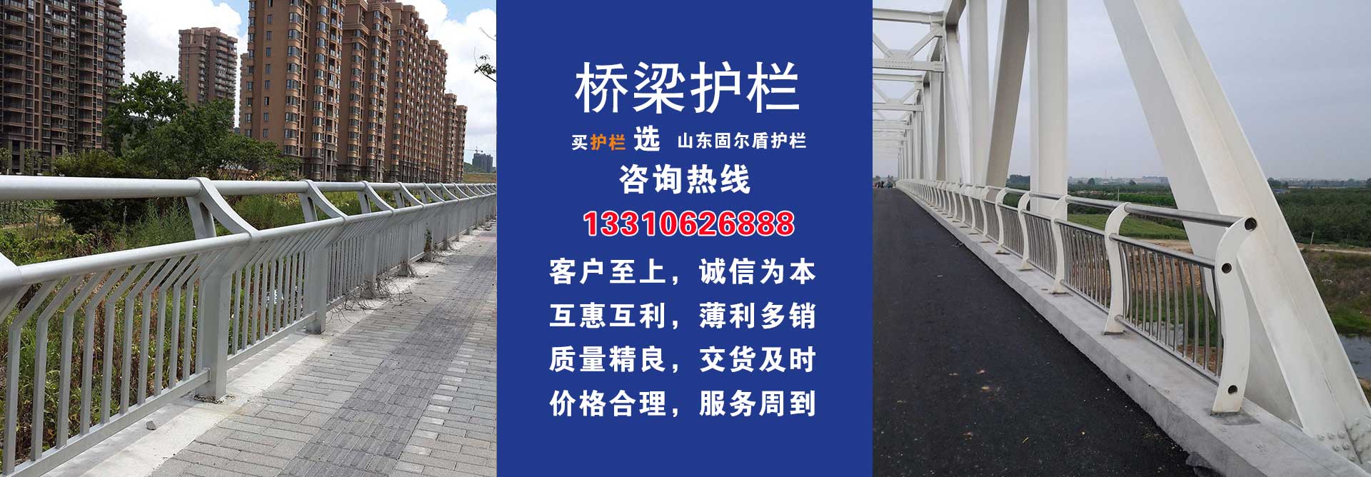 一家專(zhuān)業(yè)經(jīng)營(yíng):橋梁護(hù)欄、道路護(hù)欄、河道護(hù)欄、景觀(guān)護(hù)欄、防撞護(hù)欄、燈光護(hù)欄、不銹鋼護(hù)欄、不銹鋼復(fù)合管、鋼板立柱等產(chǎn)品,公司成立以來(lái)一直把確保了產(chǎn)品質(zhì)量作為重中之重,贏(yíng)得了客戶(hù)的信賴(lài)。我公司始終堅(jiān)持以更優(yōu)質(zhì)的產(chǎn)品,更好地服務(wù)的經(jīng)營(yíng)理念,為廣大用戶(hù)服務(wù),并已建立了穩(wěn)定的國(guó)內(nèi)市場(chǎng)銷(xiāo)售網(wǎng)絡(luò)。公司遵循“客戶(hù)至上,誠(chéng)信為本”的經(jīng)營(yíng)方針,以合理的價(jià)格,優(yōu)良的信譽(yù)竭誠(chéng)為社會(huì)各界朋友提供全面有效的服務(wù)。